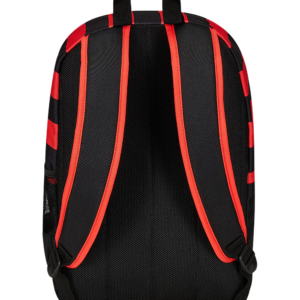 Ученическа раница на Милн ана черно червени раета. Изработена от полиестер.