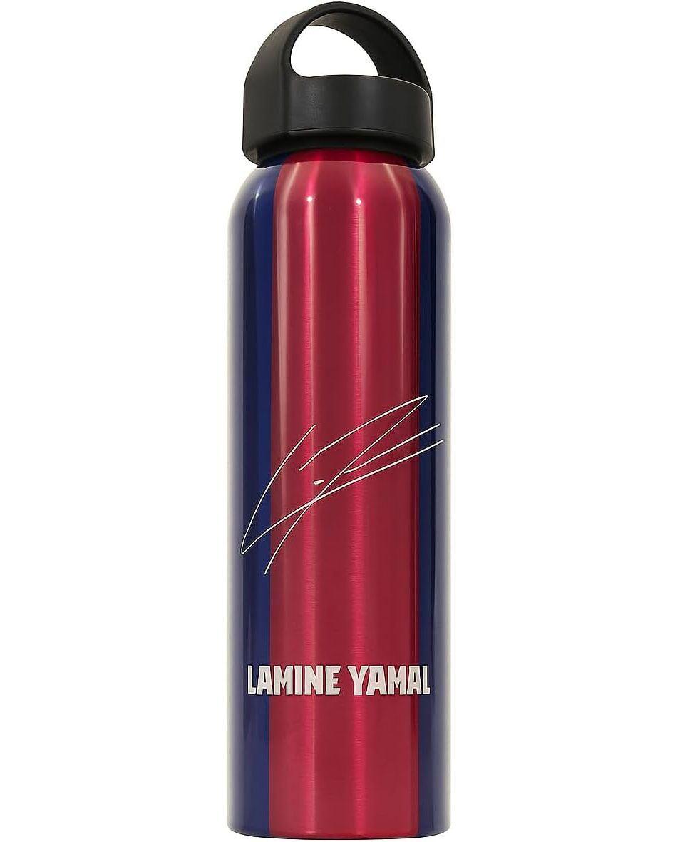 Алуминиева бутилка за вода на Барселона на синьо/червен цвят с иметои подписа на Ламин Ямал.