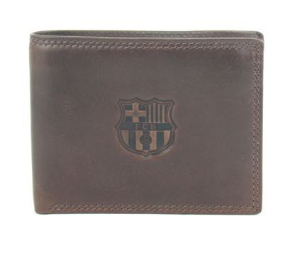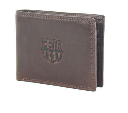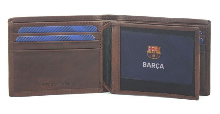 Кожен портфейл на Барселона кафяв с отпечатана емблема.