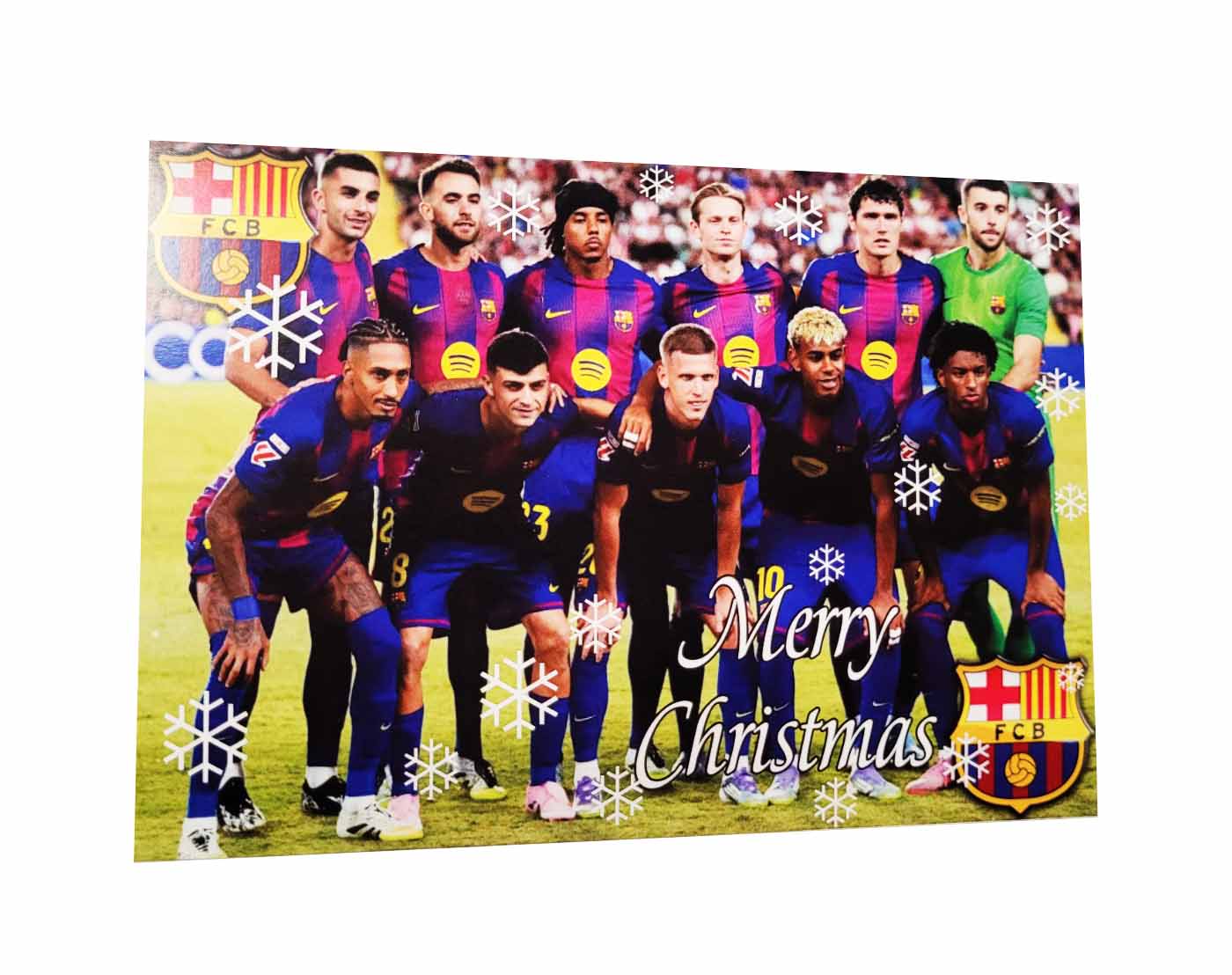 Коледна картичка на Барселона с изображение на на най-популярните играчи на клуба.