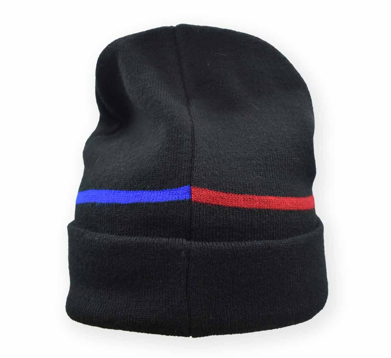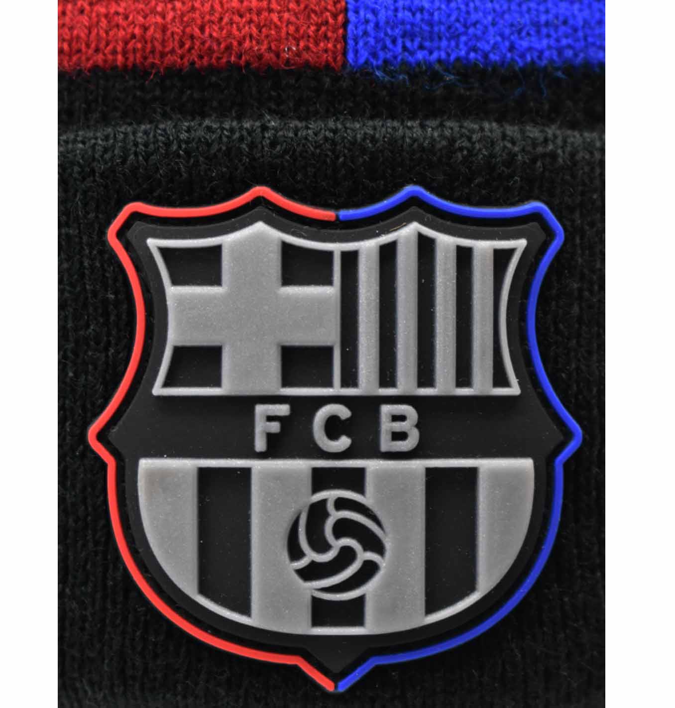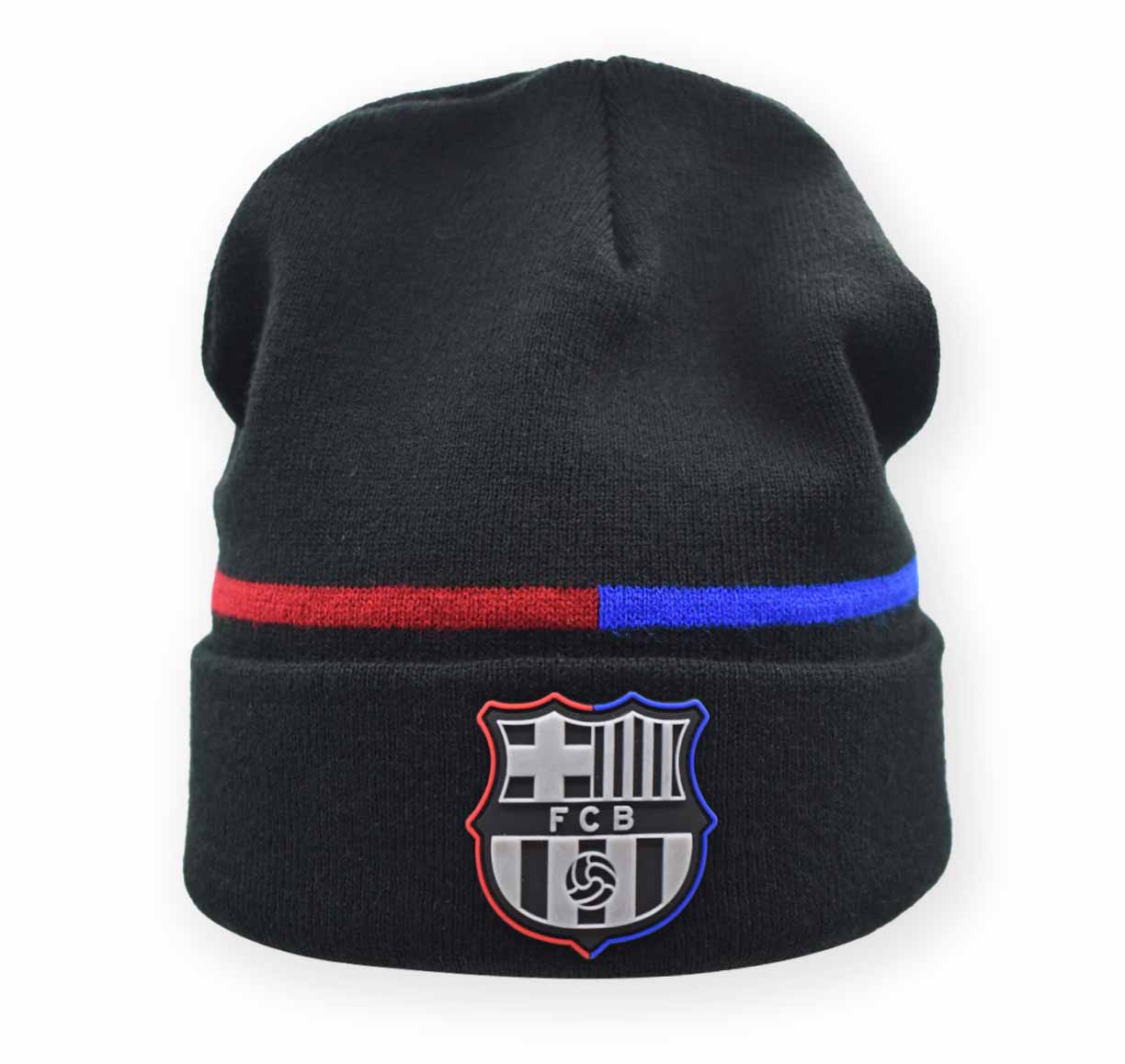 Черна плетена шапка на Барселона с релефна емблема и синьо/червена черта.