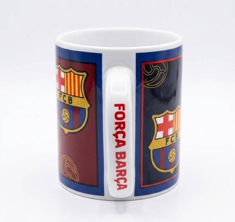 Порцеланова чаша на Барселона с емблеми в различни цветове.