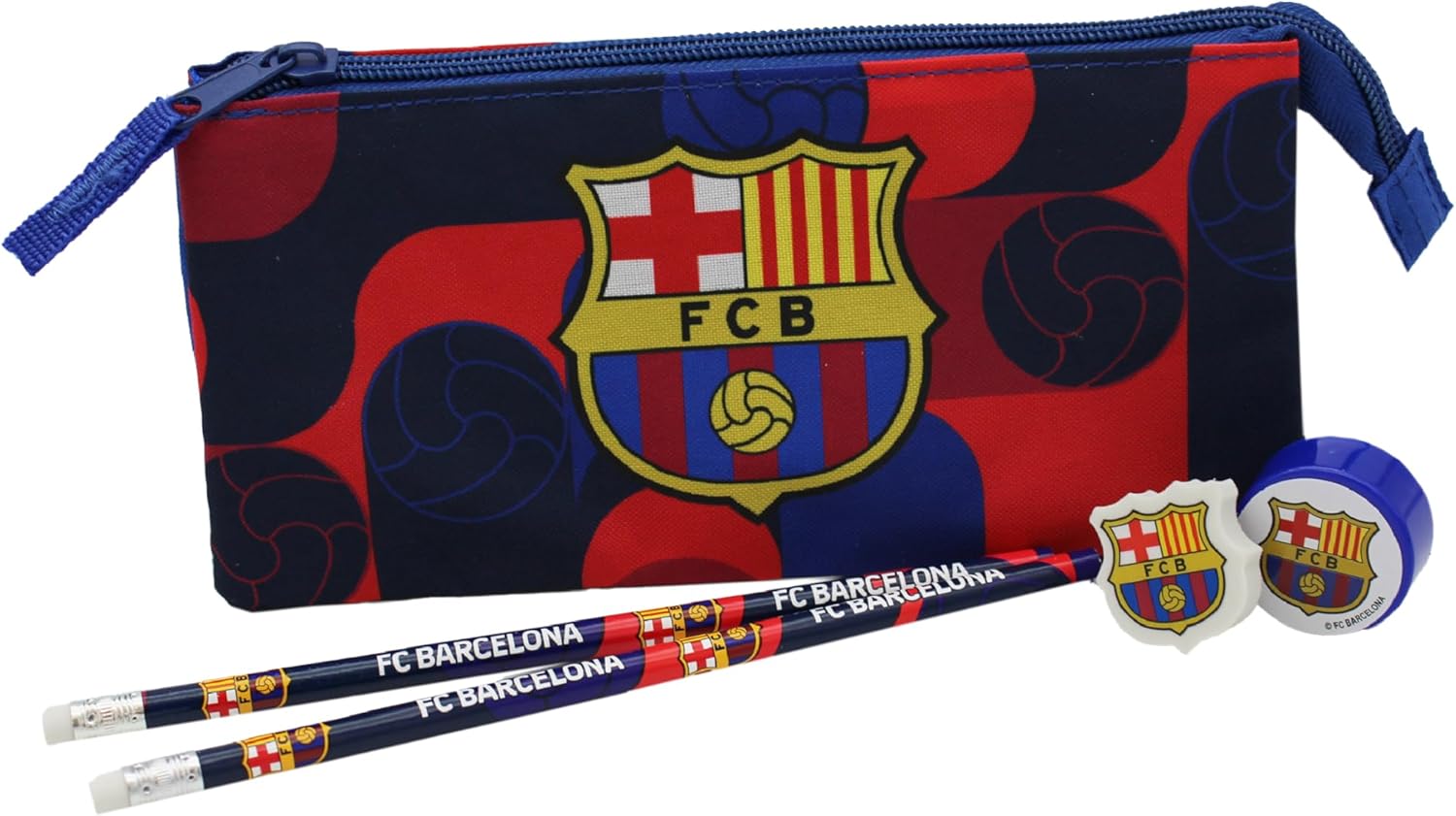 Съдържа  несесер,гумичка,острилка и 2 бр моливи с емблемата на Каталунците.