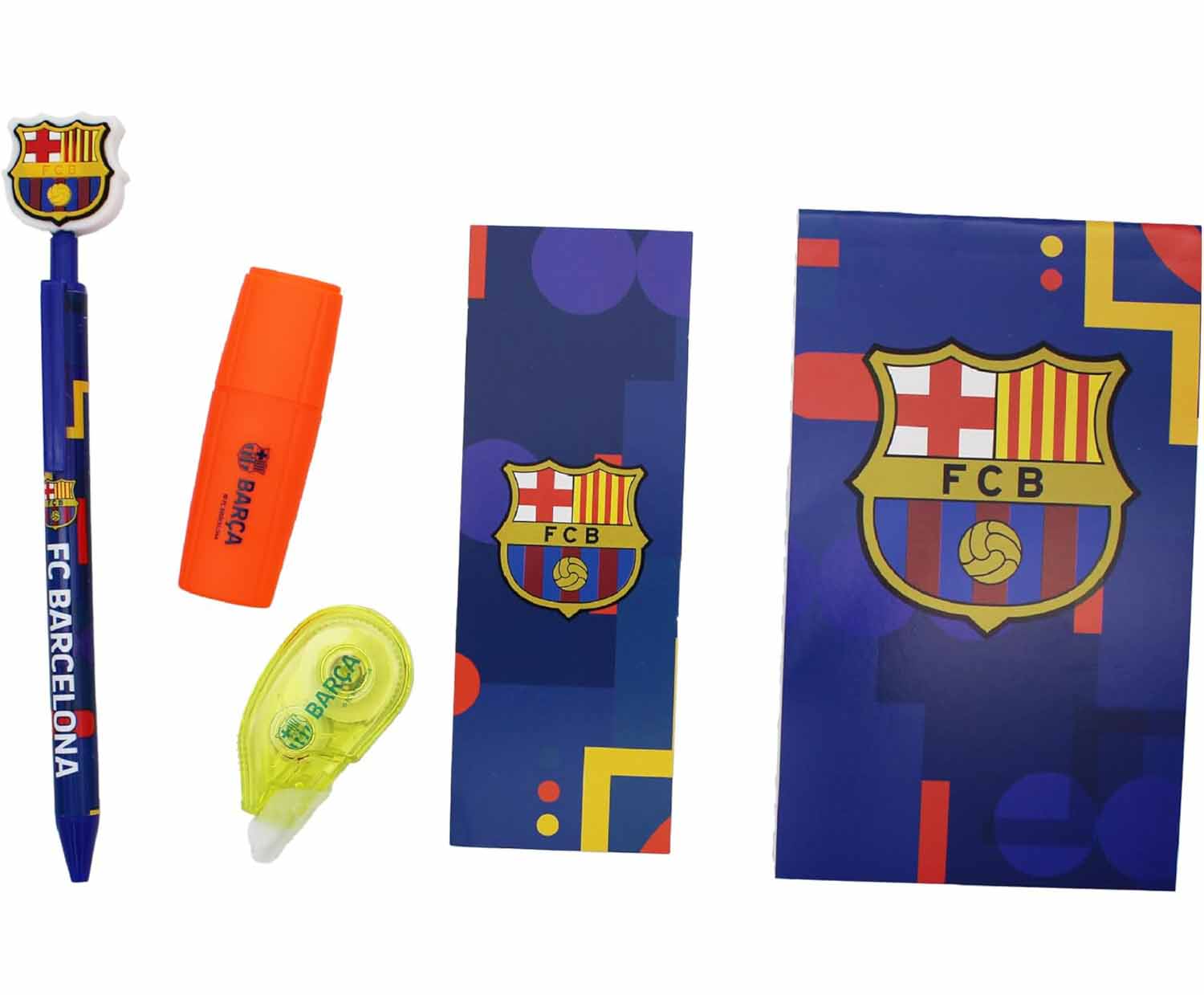 Съдържа тефтерче,химикалка,маркер и коректор с емблемата на Каталунците.