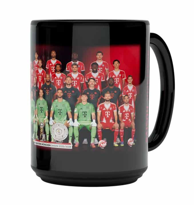 Порцеланова чаша на Байерн Мюнхен със снимка на всички играчи на отбора от новия сезон 2025/26г.