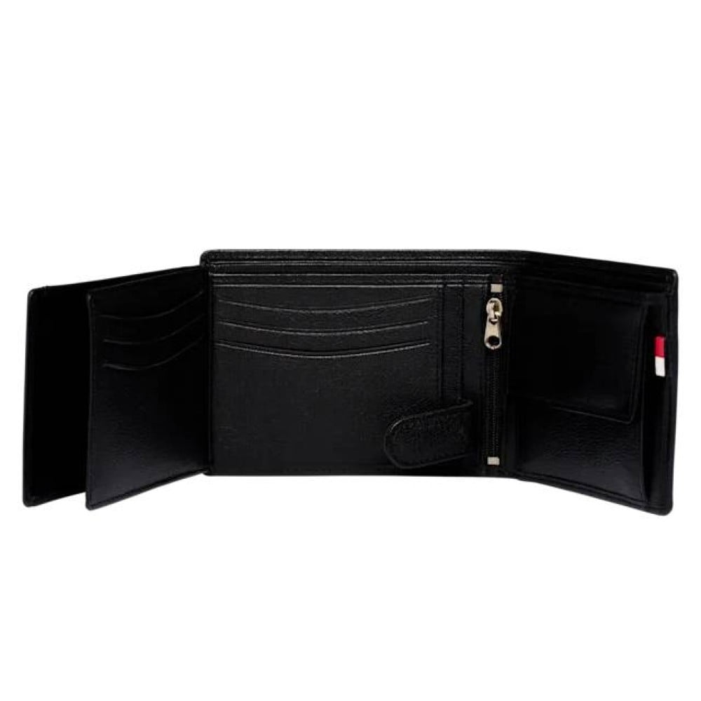 Има отделение за монети ,среден джоб с цип и много слотове за карти.