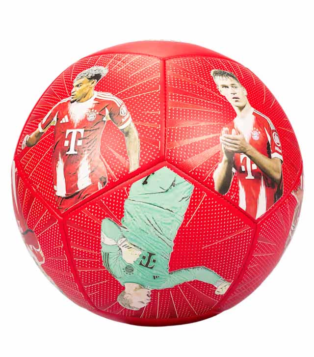 Футболна топка на Байерн Мюнхен с изображения на най-популярните играчи на „Баварците“ през новия сезон 2025/26.