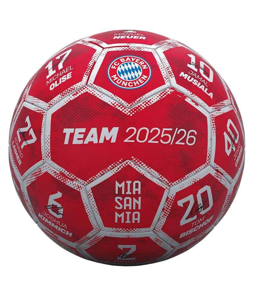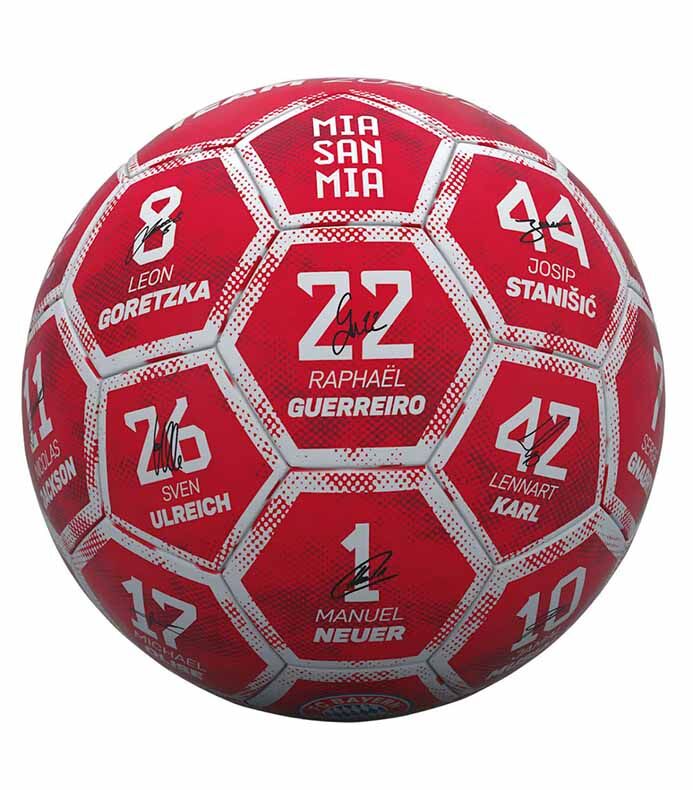 Топка с имената,номерата и подписите на играчите на „Баварците“ от новия сезон 2025/26.