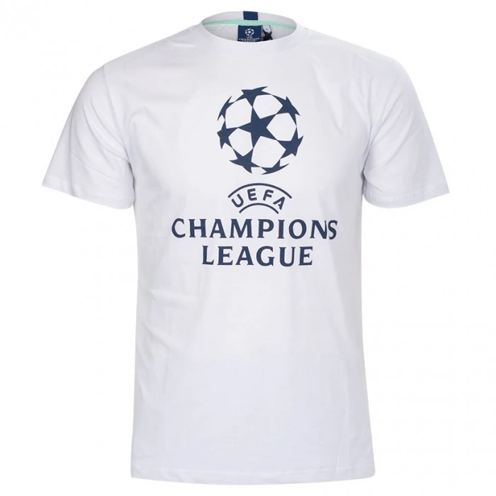 Бяла тениска на с емблема на Шампионска лига.