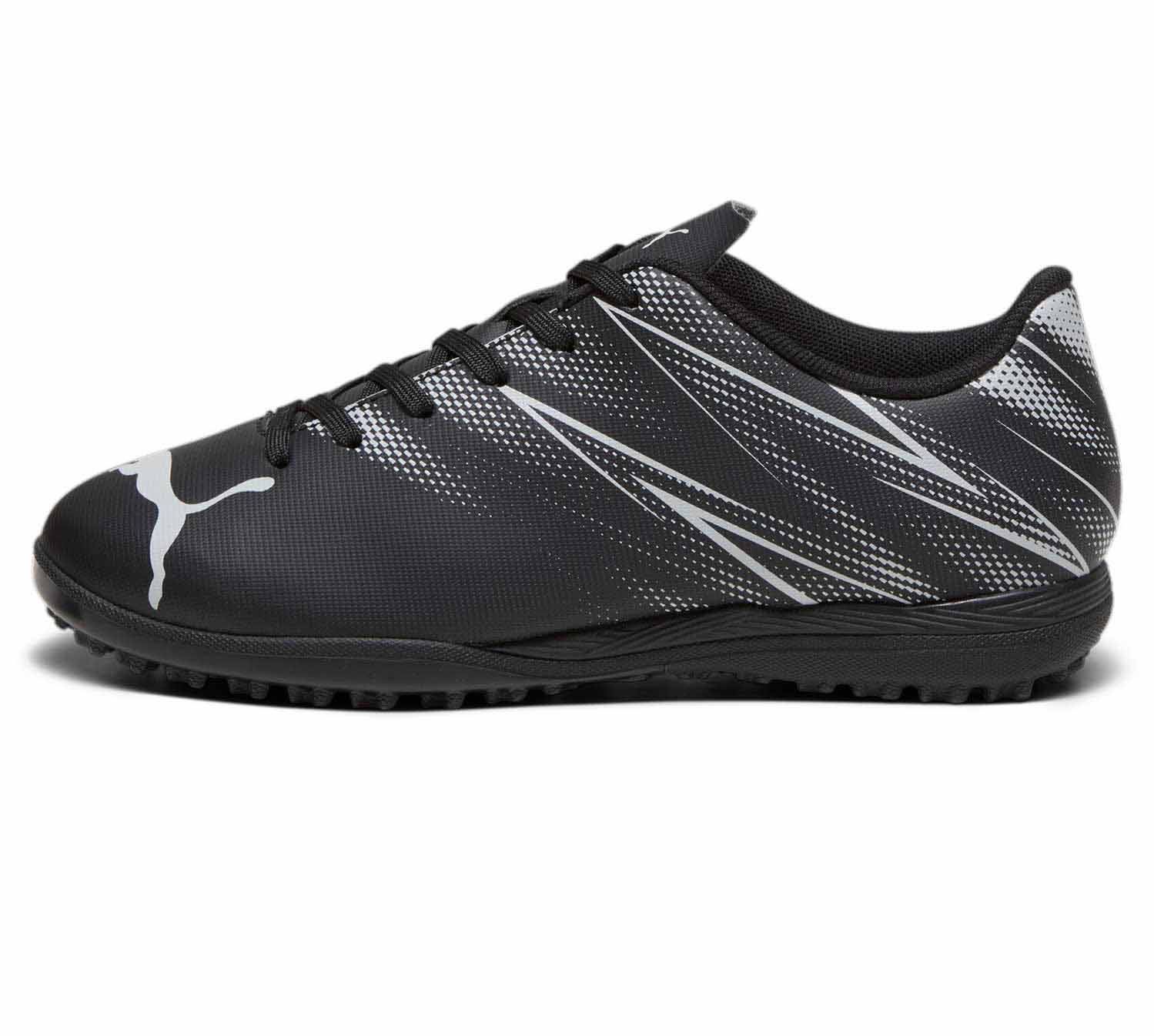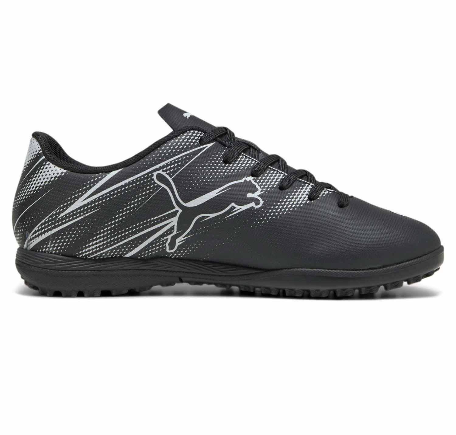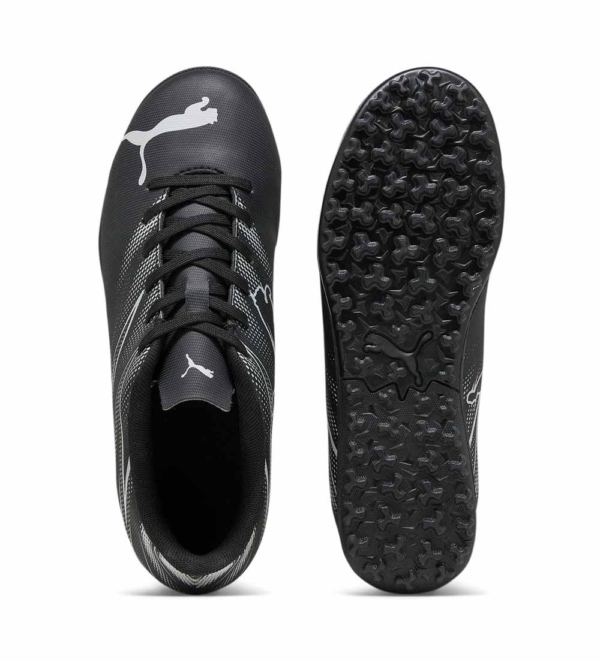 Детски футболни обувки PUMA ATTACANTO TT-черни със сиво.