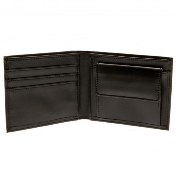 Черен кожен портфейл на Челси с отпечатана емблема.