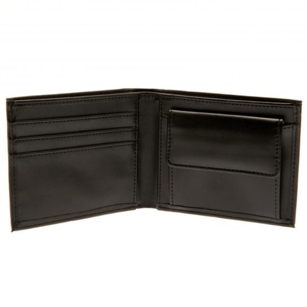 Черен кожен портфейл на Ливърпул с отпечатана емблема.