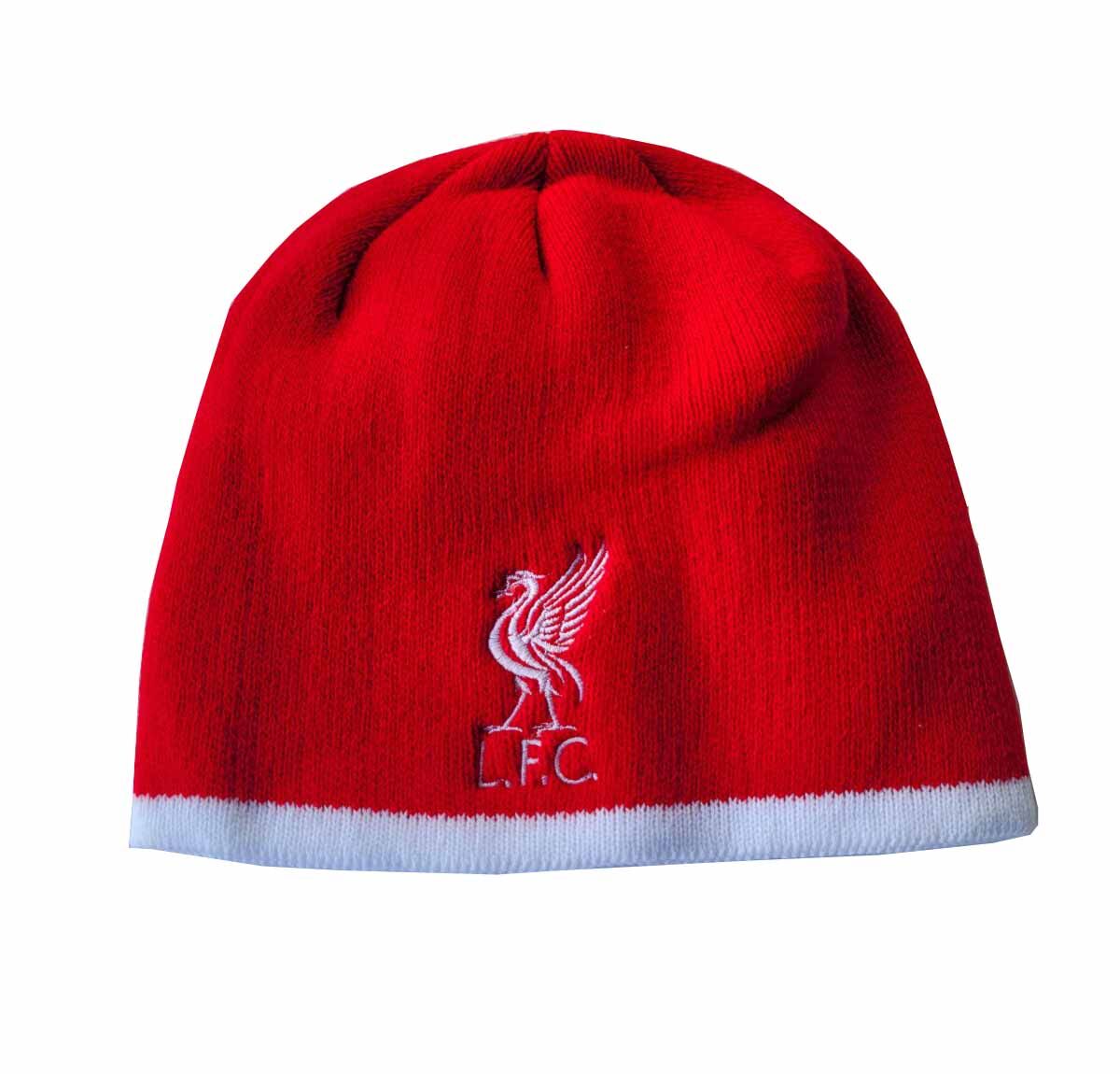 Плетена шапка на Ливърпул с бродирана емблема и бял кант.