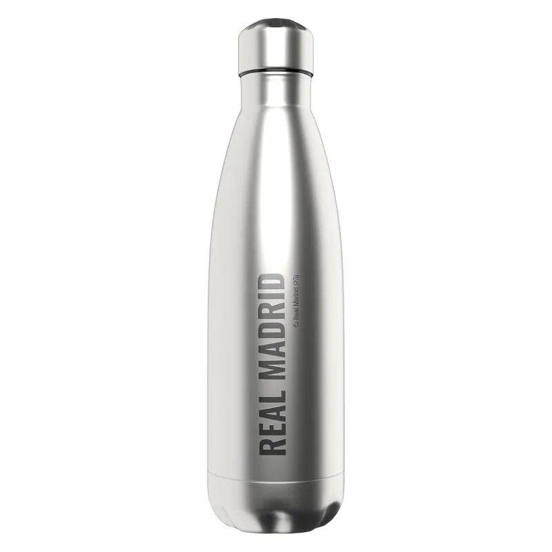 Сребриста метална термо бутилка за вода на Реал Мадрид.