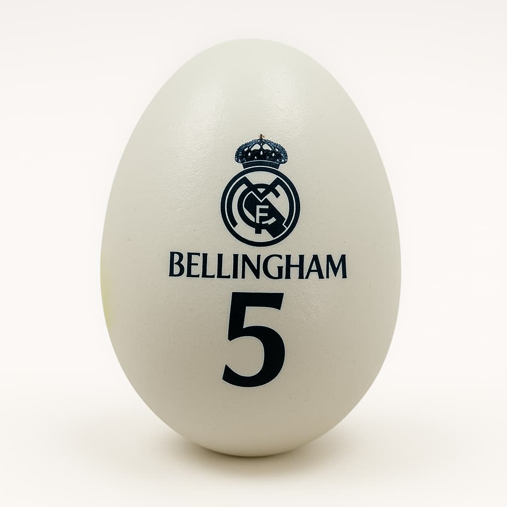Дървено великденско яйце на Реал Мадрид с номер 5 Белингам.
