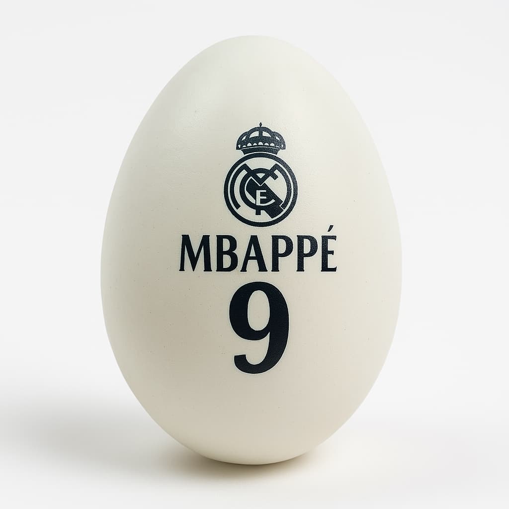 Дървено великденско яйце на Реал Мадрид с номер 9 Мбапе.