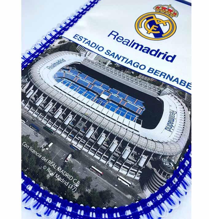 Флагче на Реал Мадрид с изображение на Стадион Сантяго Бернабео.