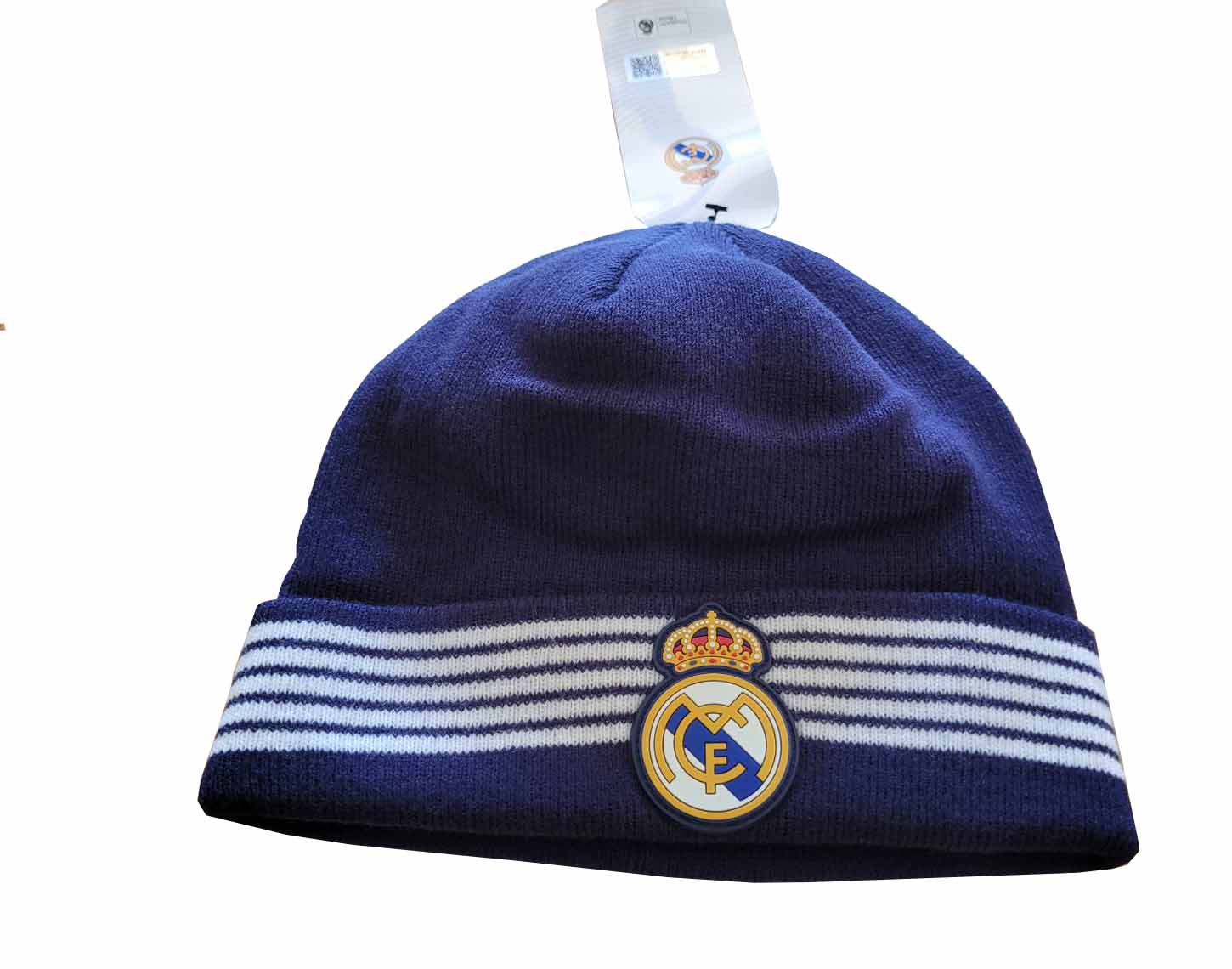 Плетена шапка на Реал Мадрид с черти и релефна емблема.