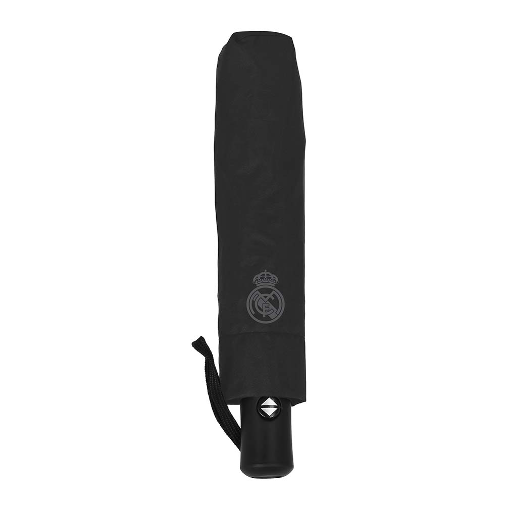 Автоматичен сгъваем чадър на Реал Мадрид със сребриста емблема.