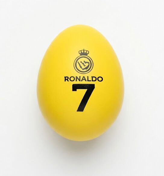Дървено великденско яйце на Роналдо-с номер 7 и емблема на Ал Насър.