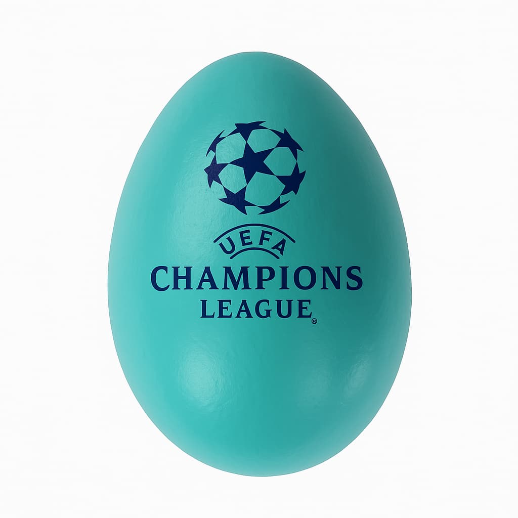 Дървено великденско яйце на с емблемата на Шампионска лига.